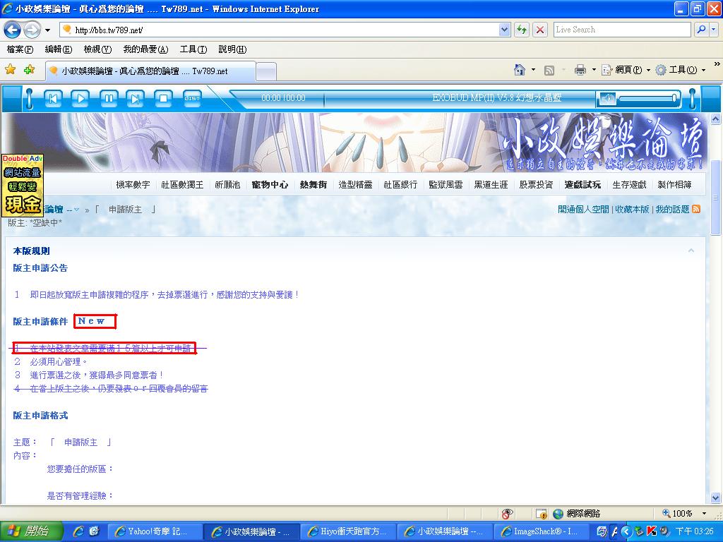 ※≡ 論 壇 人 才 大 招 募 想 要? ≡※ ˇ.想當板主嗎?論壇各版都可以報名喔! 《點我報名》 ˇ.沒有你想要的版?由你來創版吧! 《點我創版》 ˇ.喜歡自拍?那就和我們分享你的照片吧 《點我分享》 ˇ.對論壇有什麼意見想反應嗎? 《點我反應》 ※≡ 有 什 麼 問 題 不 敢 說 嗎 ? ≡※ 網站總站長:《傳訊息給我》 論壇副站長:《傳訊息給我》 論壇總版主:《傳訊息給我》 或者請您告知論壇客服人員...他們會很高興為您服務。 ※≡ 廣 告 刊 登 ≡※ 廣告刊登信箱:admin@tw789.net 來信請註明廣告刊登,並附上您的聯絡方式! 電話、信箱、即時通、msn!將由專人為您服務。 |