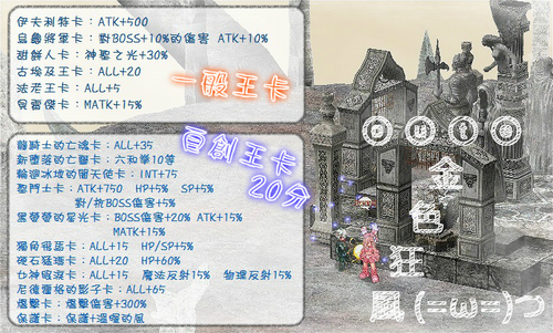 伺服器卡片掉落倍率:普王3%   自創 & 精靈王1%
