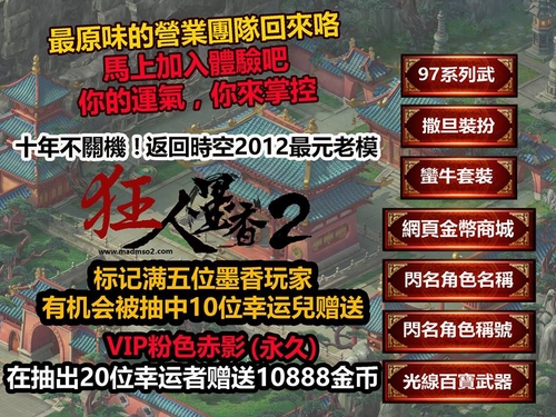 ◆為了打造一個良好的遊戲環境,狂人墨香2絕不出售任何變態裝備。